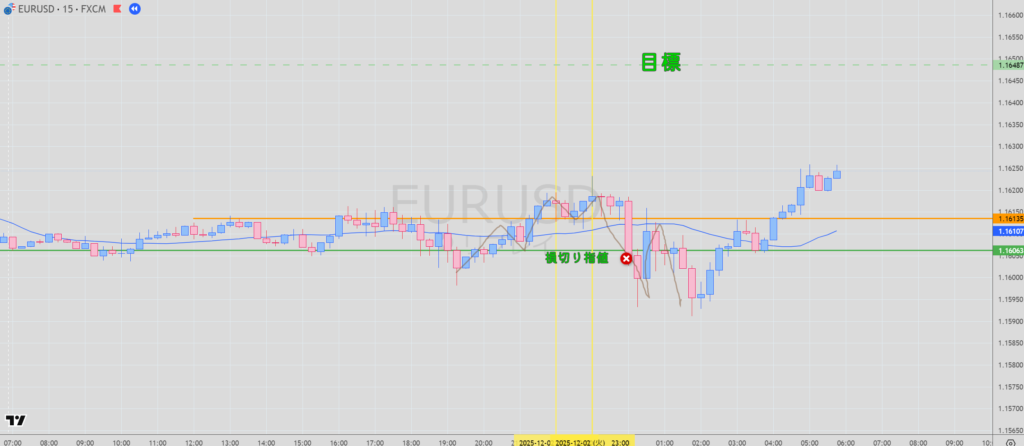 次23時エントリ損切りを指値にセットして就寝。(15分前回安値)