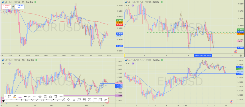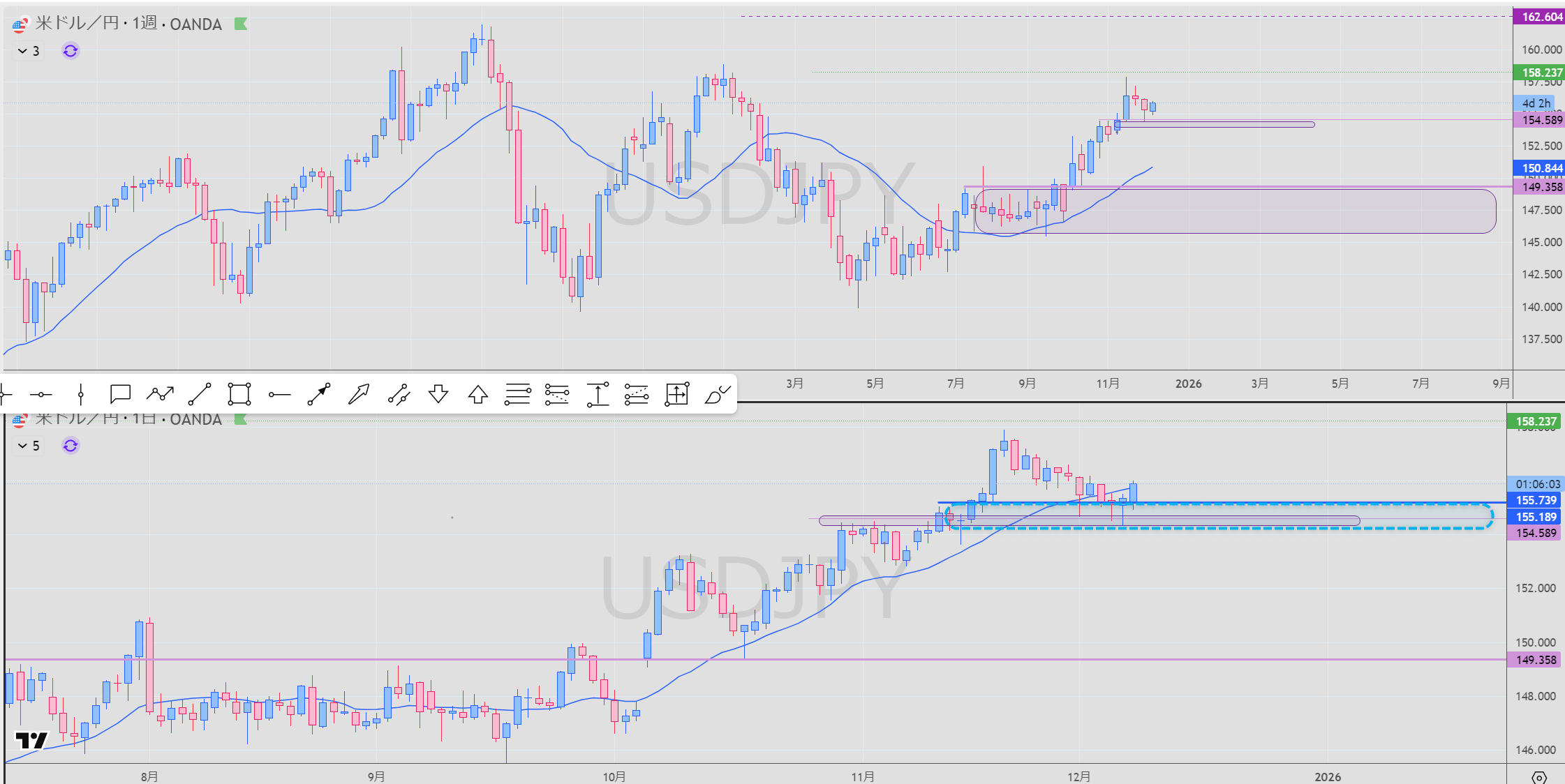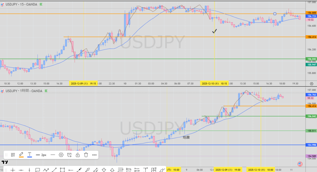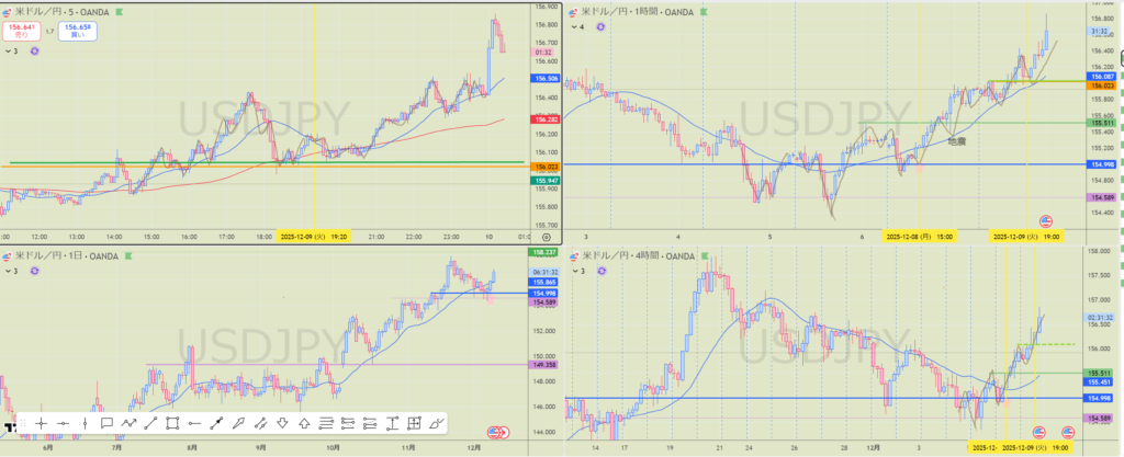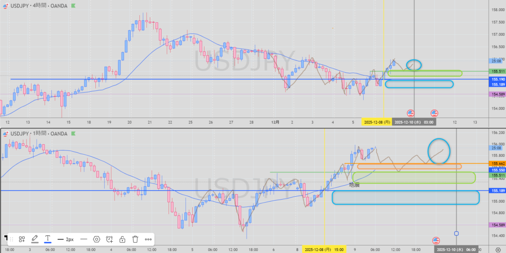 どちらにしても日足の押目が下にいるので 日足押目VS4H売り押さえ(レジサポ転換)で調整に入りやすい。