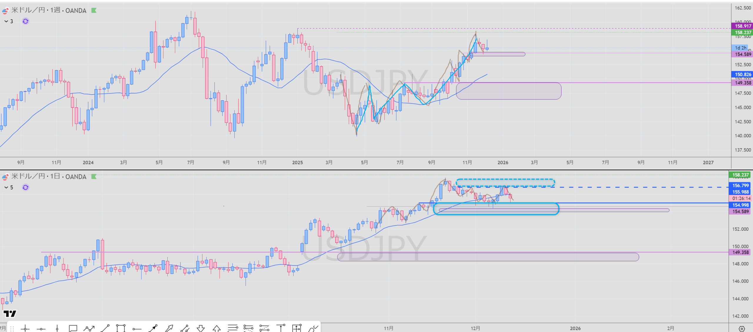 - 日足 青 売りレジスタンス 破線