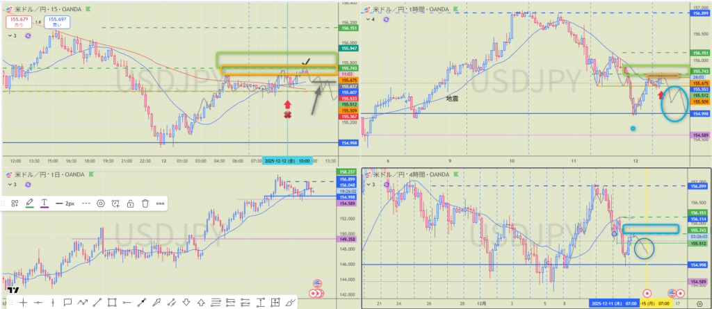 リスク:4Hカウント違う問題とMAより下に位置している。