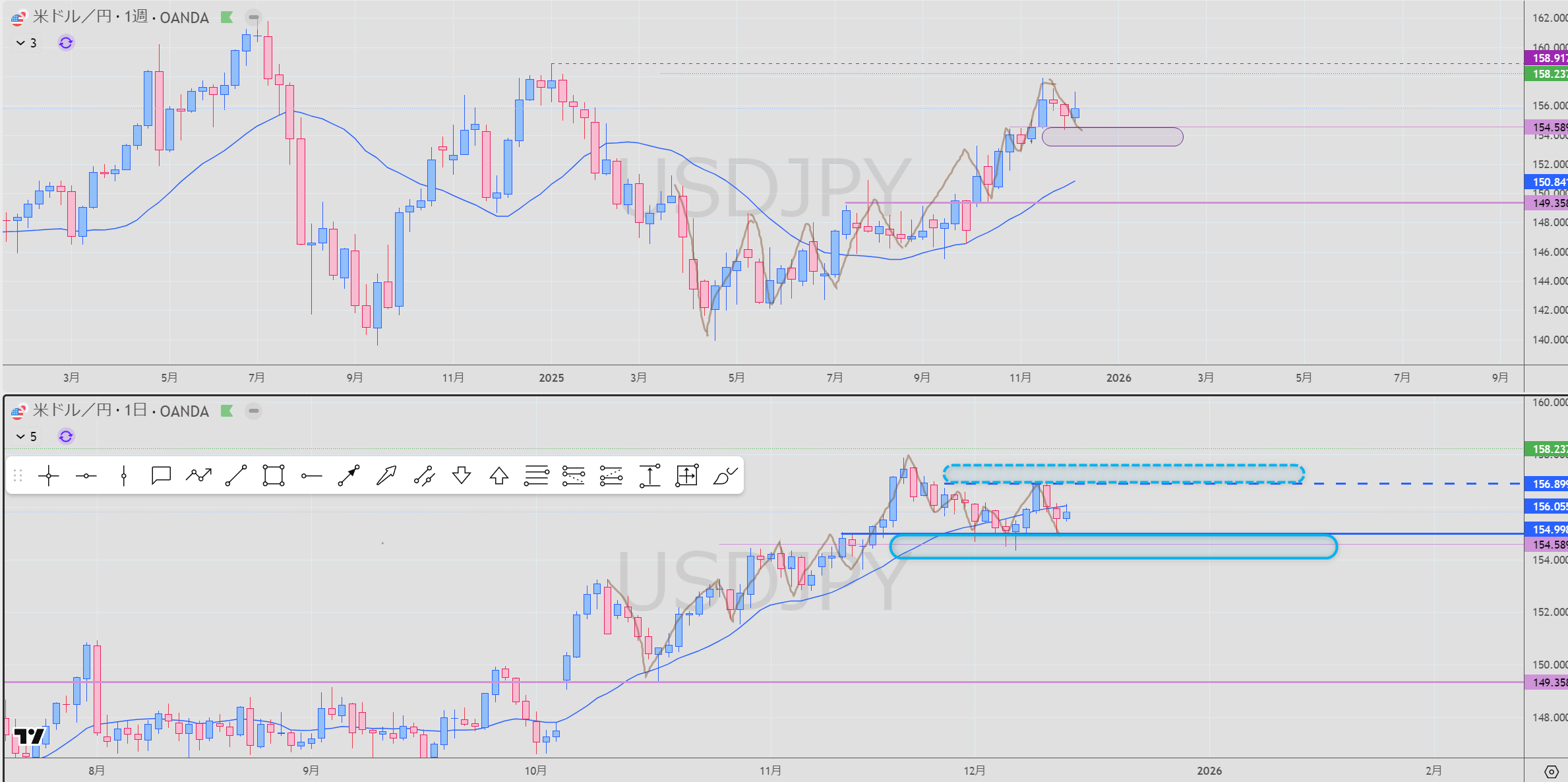 - 日足 青 売りレジスタンス 破線