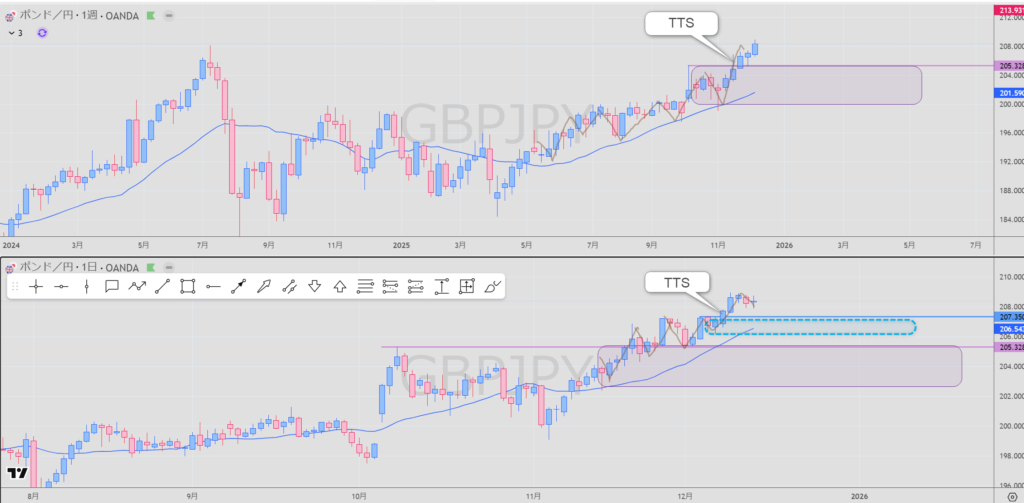高値(買い抑え)を更新 上昇の波の途中 TTS発生