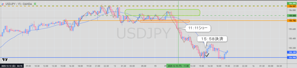 11:11 ショートエントリー(ちょっと遅かったのは迷いがあったため。ロット少な目でエントリ)