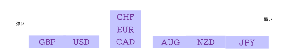 先週の通貨強弱 oandaのチャートではこんな感じ でもCHF、EUR、CAD 同等にしたけど、ちょっとおかしかったな~。