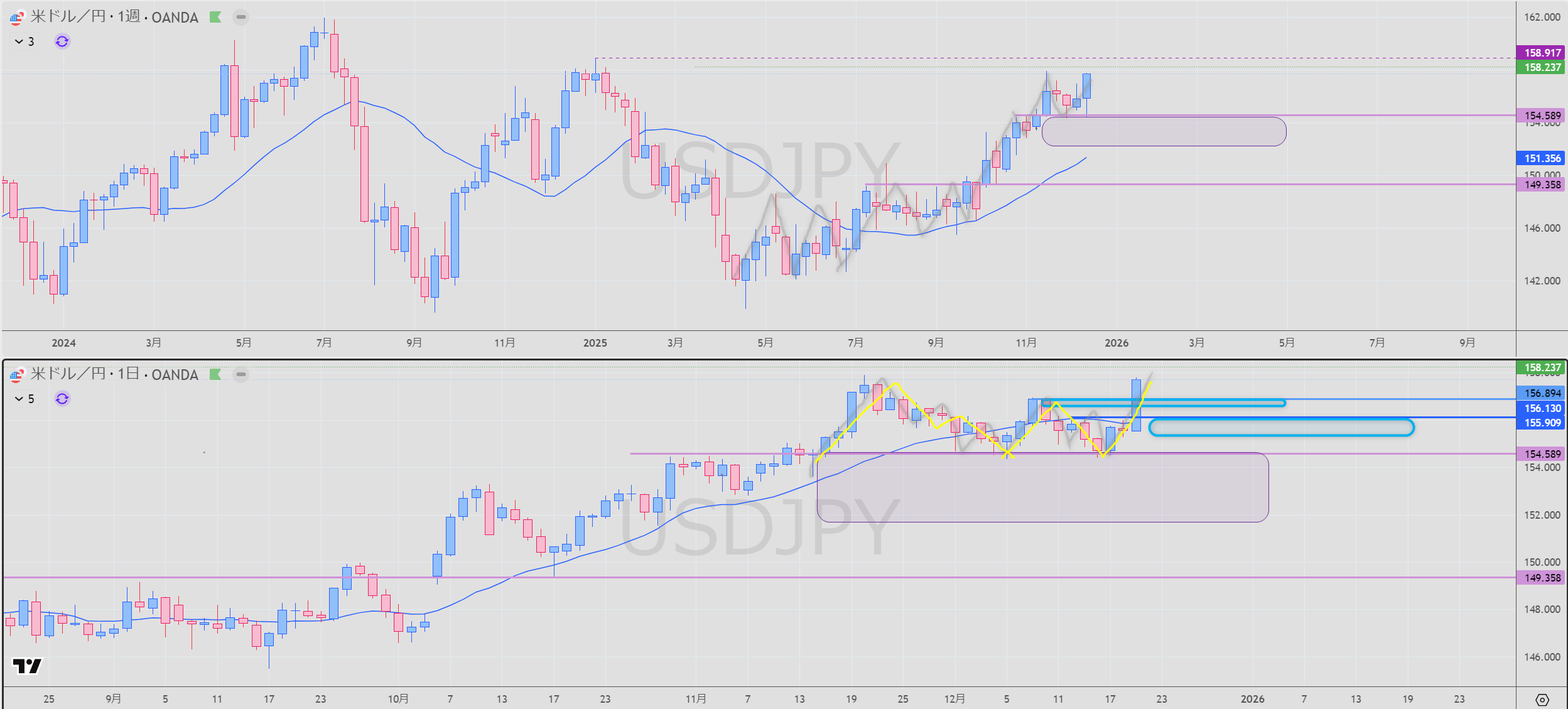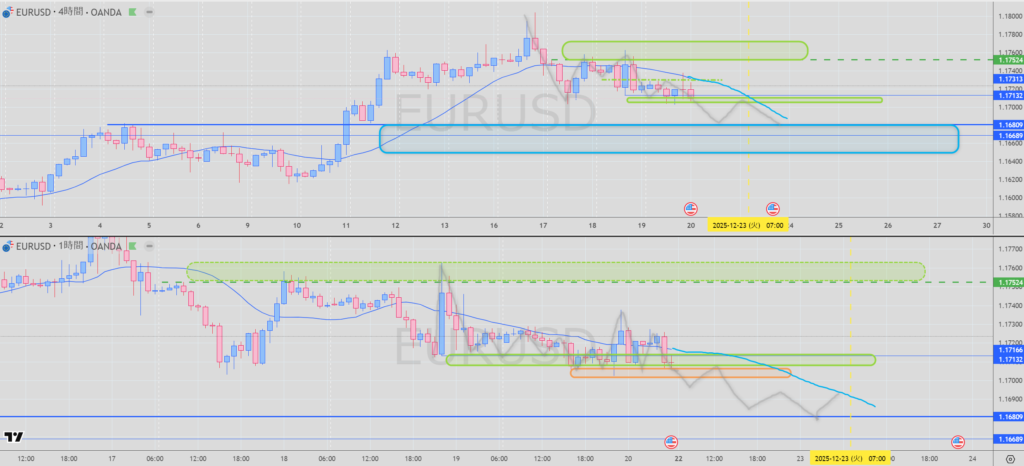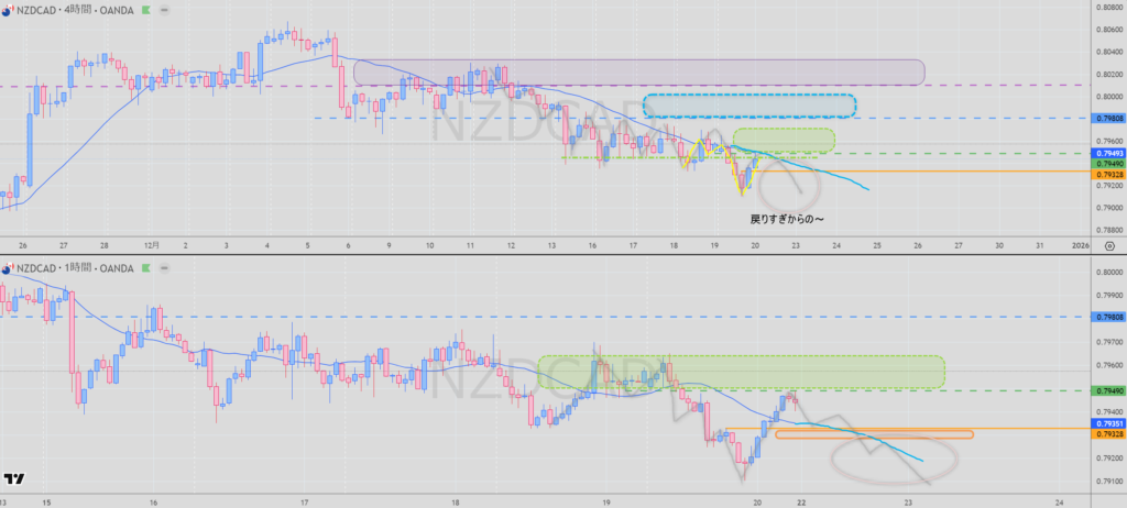 シナリオ:日足のレジスタンス(戻り売り)を背に4H戻りすぎからのショート検討