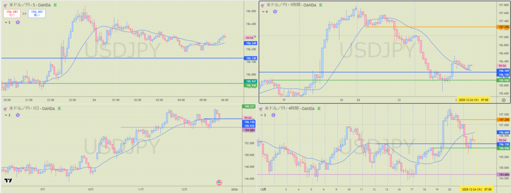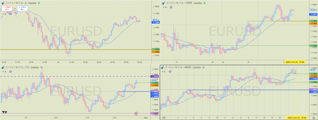 買いの場合:①4H押目まで下降し止まれば検討(MA位置と下抜きする可能性があるので要注意)