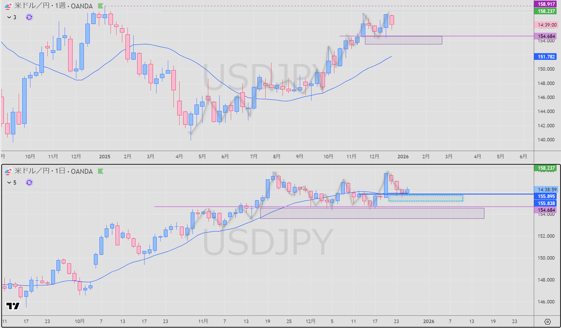 - 日足 青 売りレジスタンス 破線