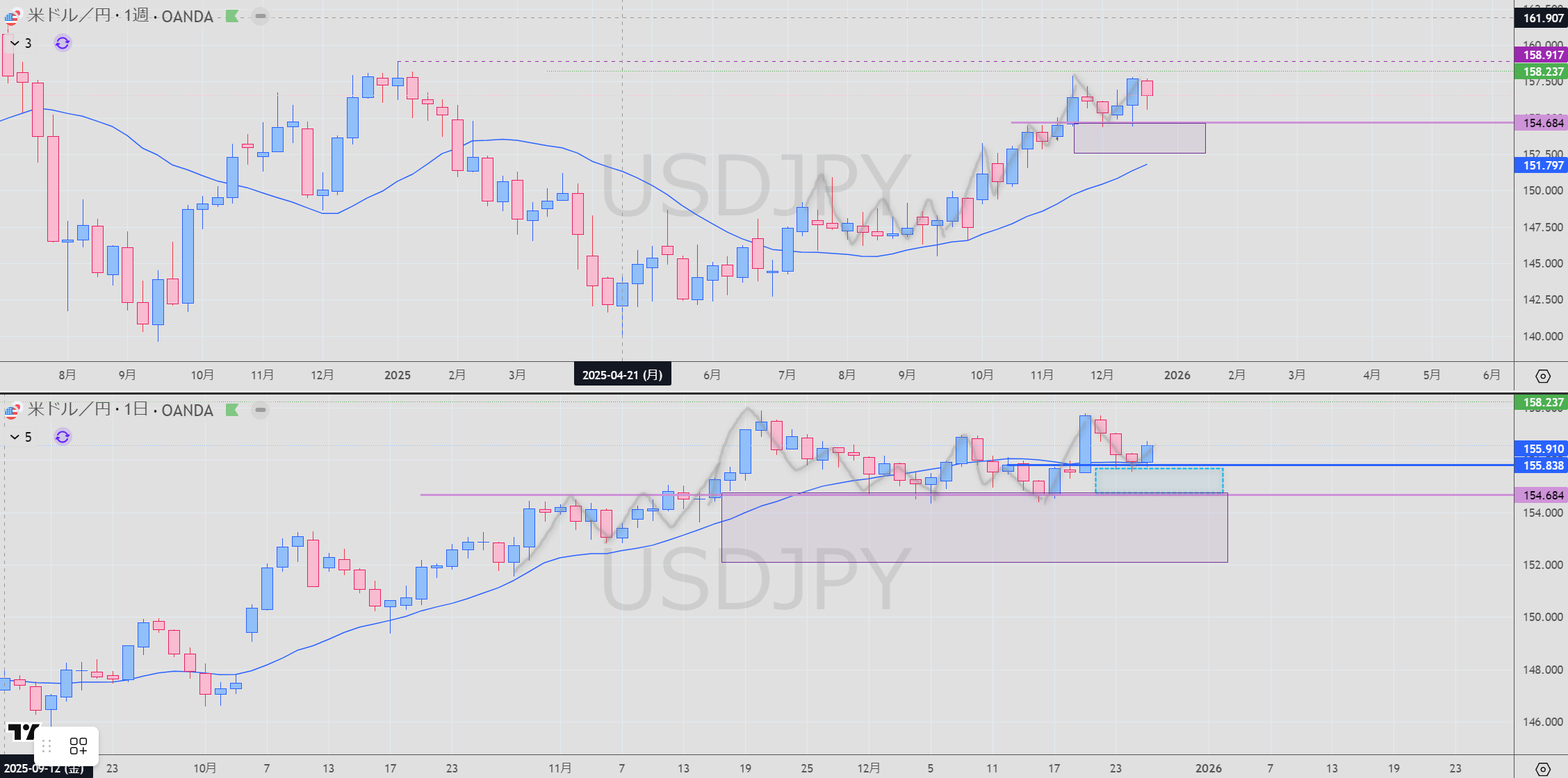 MA:上向きからの横。先週の十字線MAはレジスタンスとして機能している。