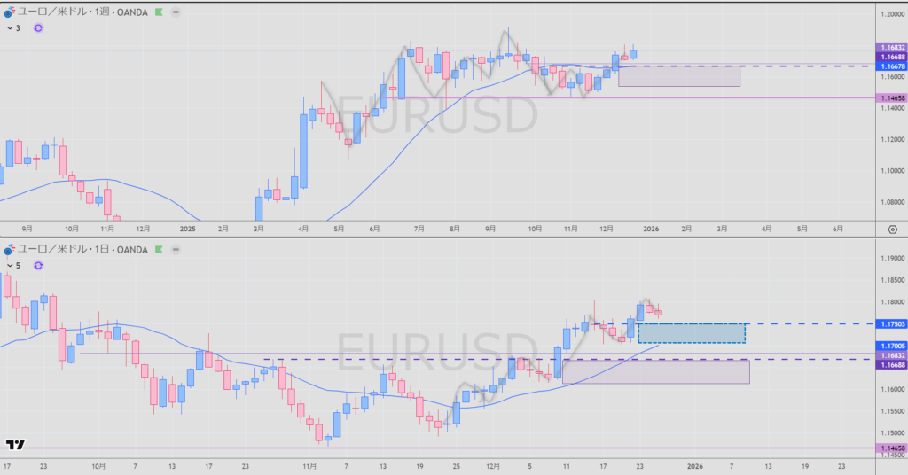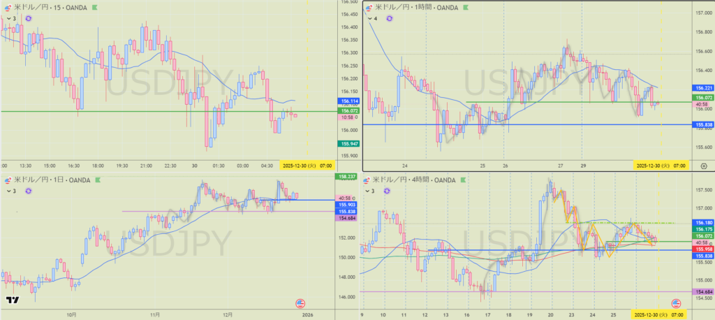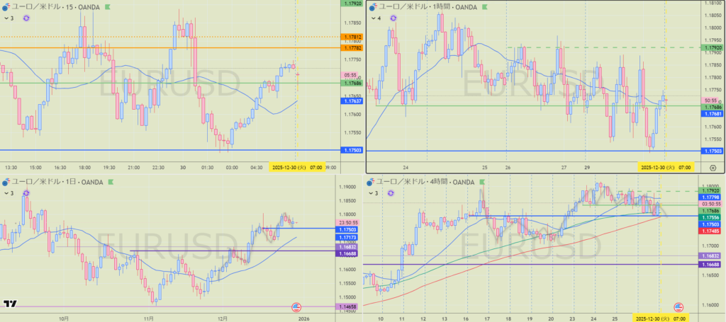 *日足の押目が下にいるのでホイホイとエントリは危険。日足の押目までは14Pぐらいしかないが。4Hのターゲットまでは60Pぐらいある。