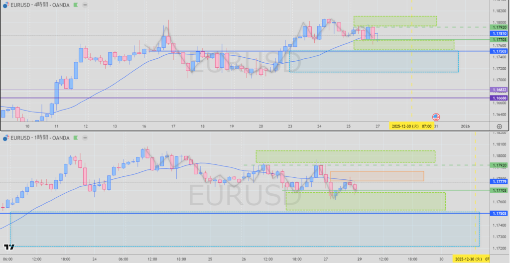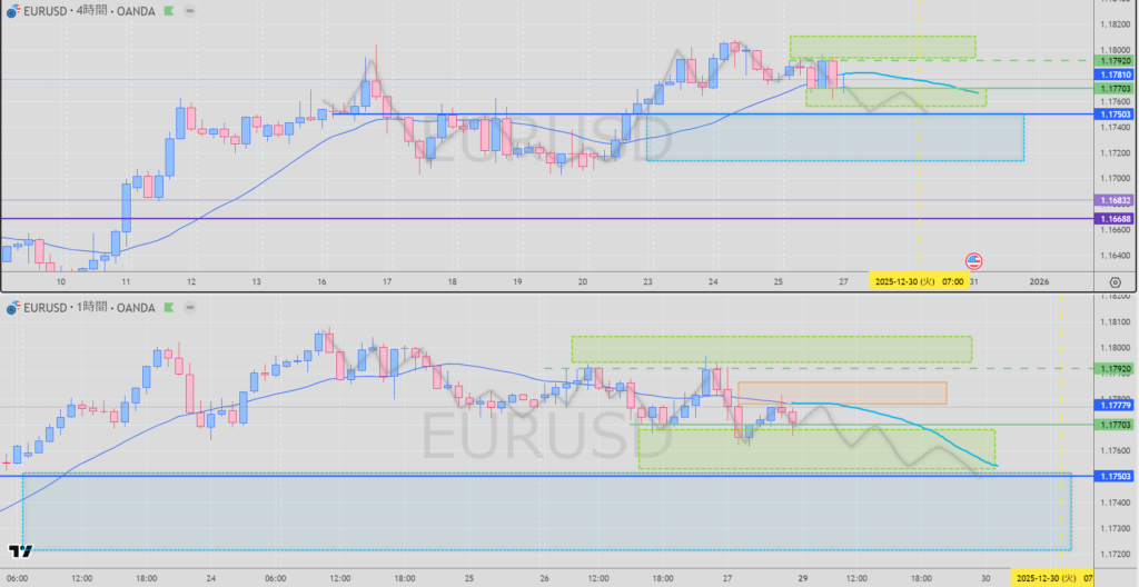 4H買い支えを下に抜けられず、MAをローソク足が上抜いたら買い検討(決して波が出やすい場面ではないので)