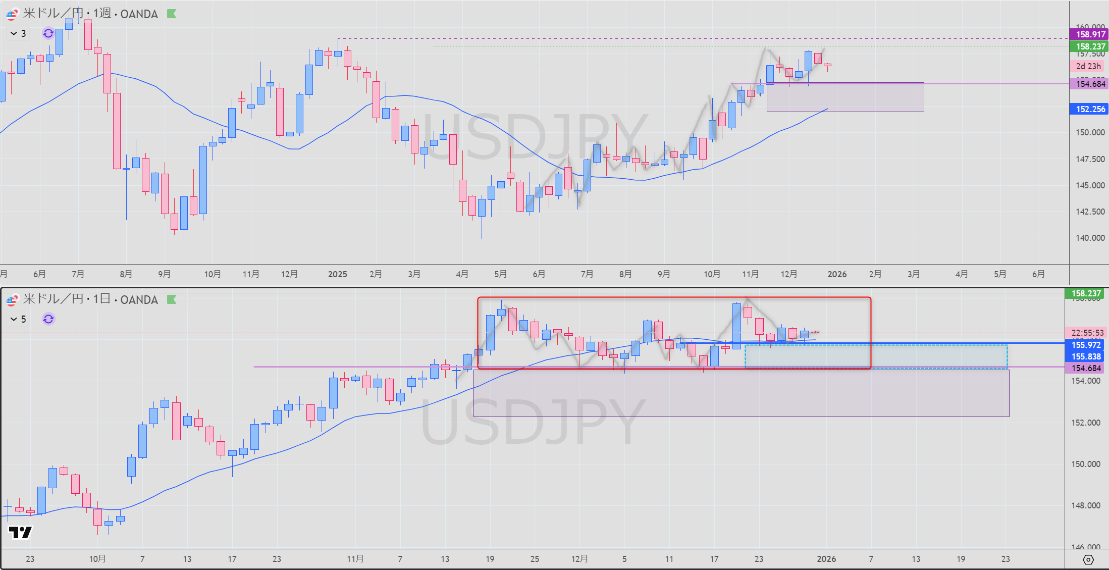 年末リスク。年足リスク(ただ動いたときは参加者が少ない分ど~~んと行く可能性あり)