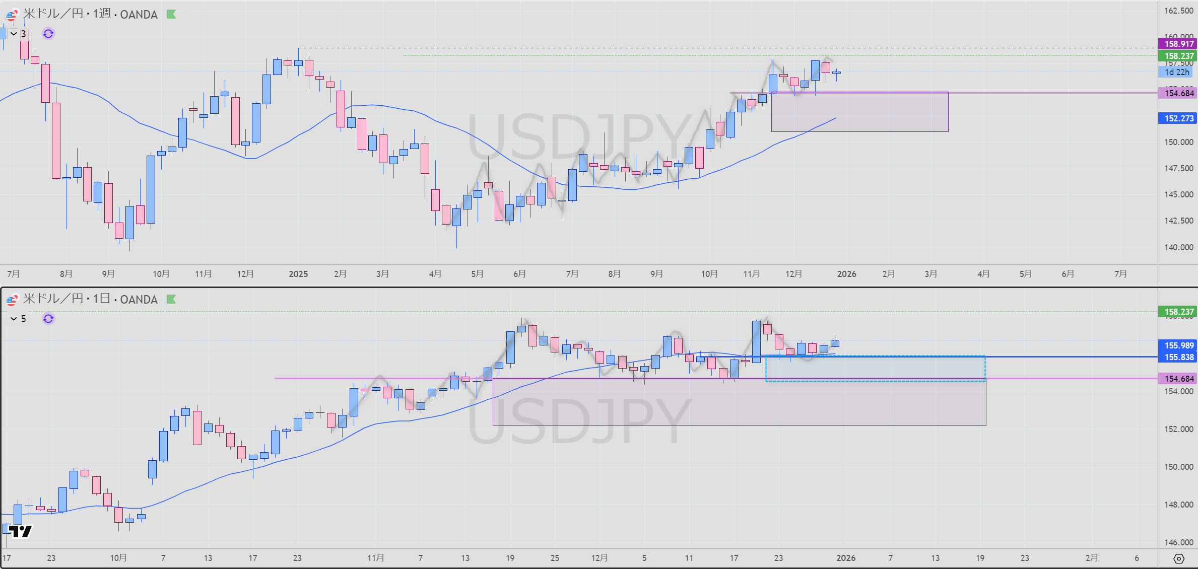 - 日足 青 売りレジスタンス 破線