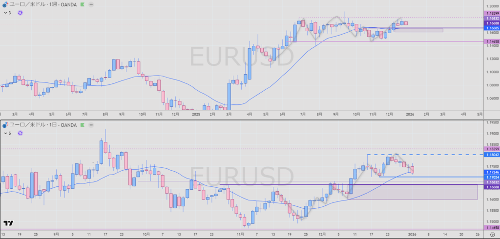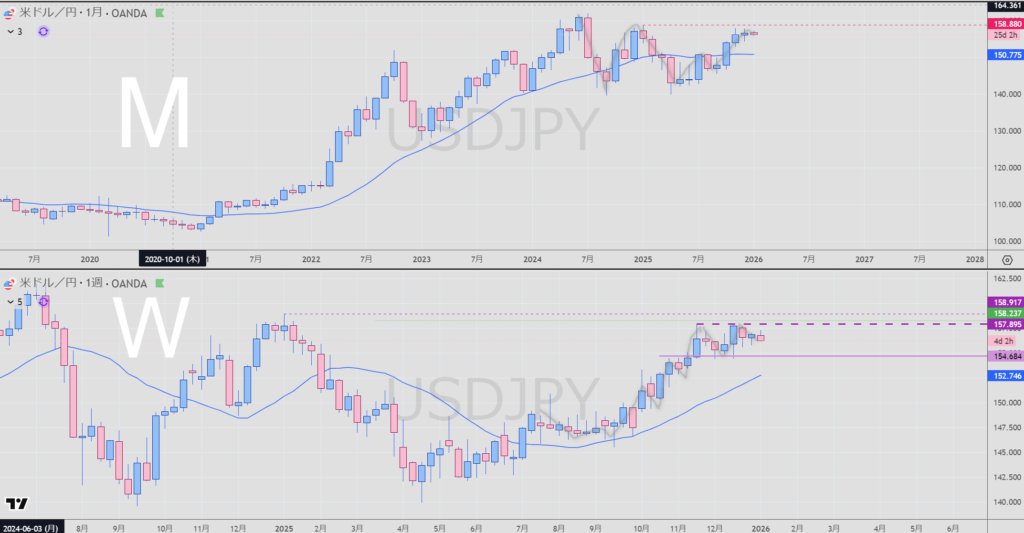 週足は方向転換するかどうかのところ (上に展開したら)