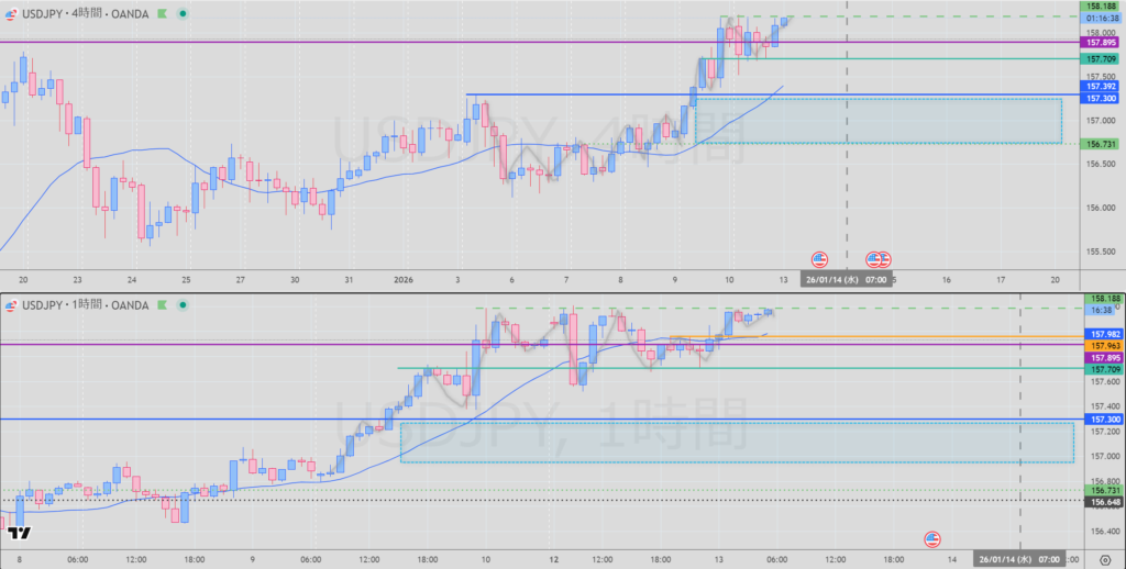 4H高値(売り抑え)を(4時間高堰=1時間高値)上抜けしたら