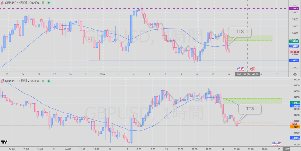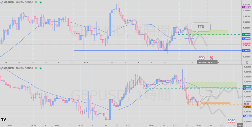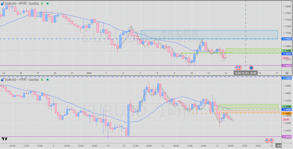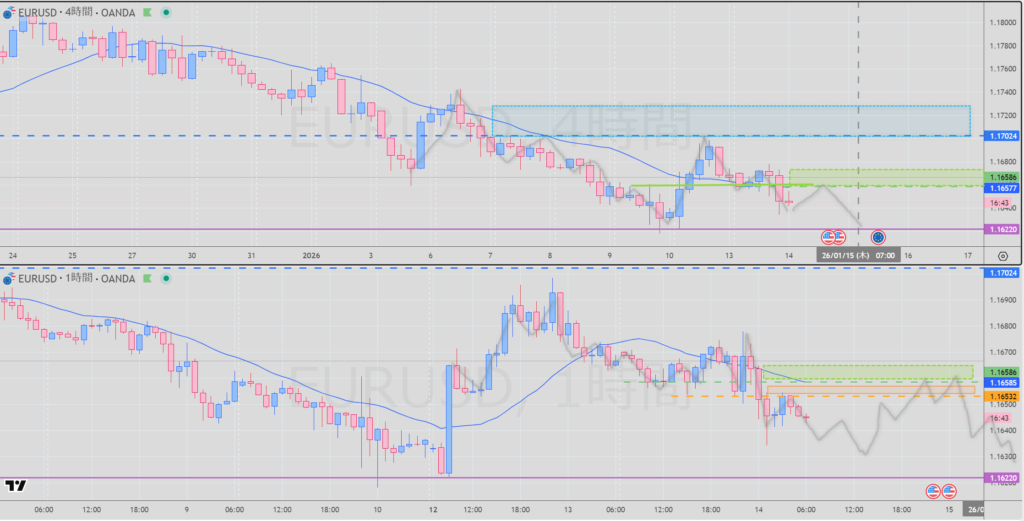 戻らない場合 下降の名もの途中を 1Hで戻り売り。