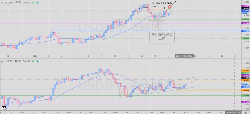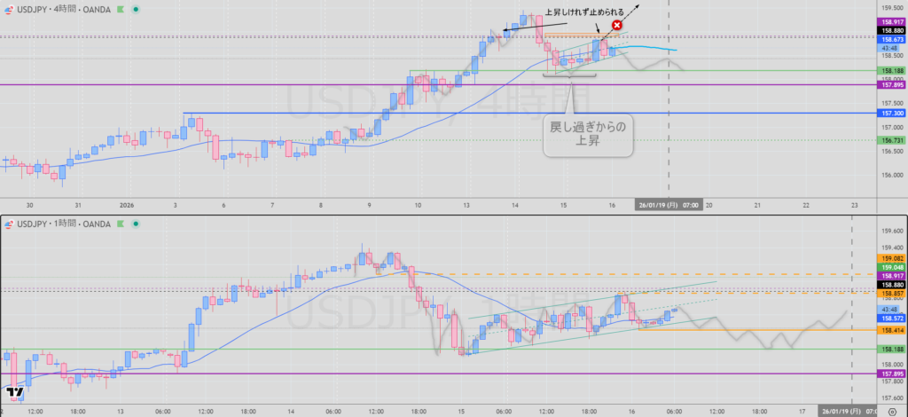 4H 戻り売りまで戻って 下位足で反転 足場確認出来たら売り検討