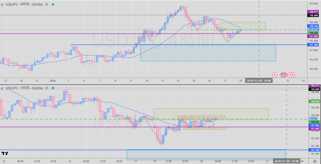 シナリオ 4H押し目買い 押目まで戻ったら買い検討。