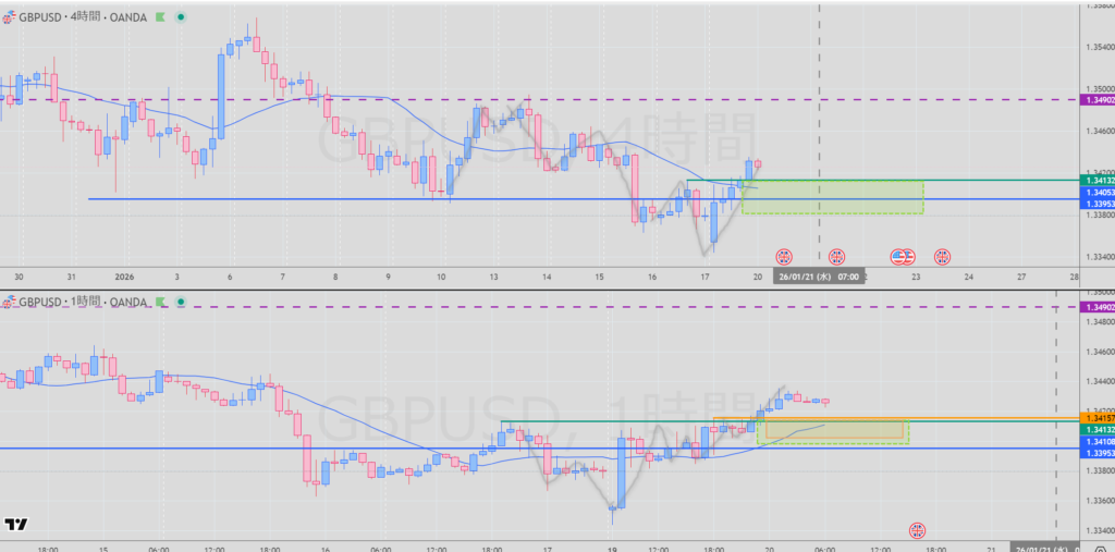 戻りゾーンで反転するかどうか下位足の動きに注目