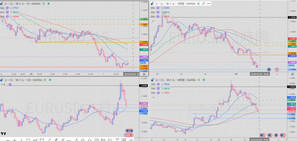 ① 4H/1H同時に安値を割った。