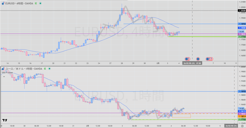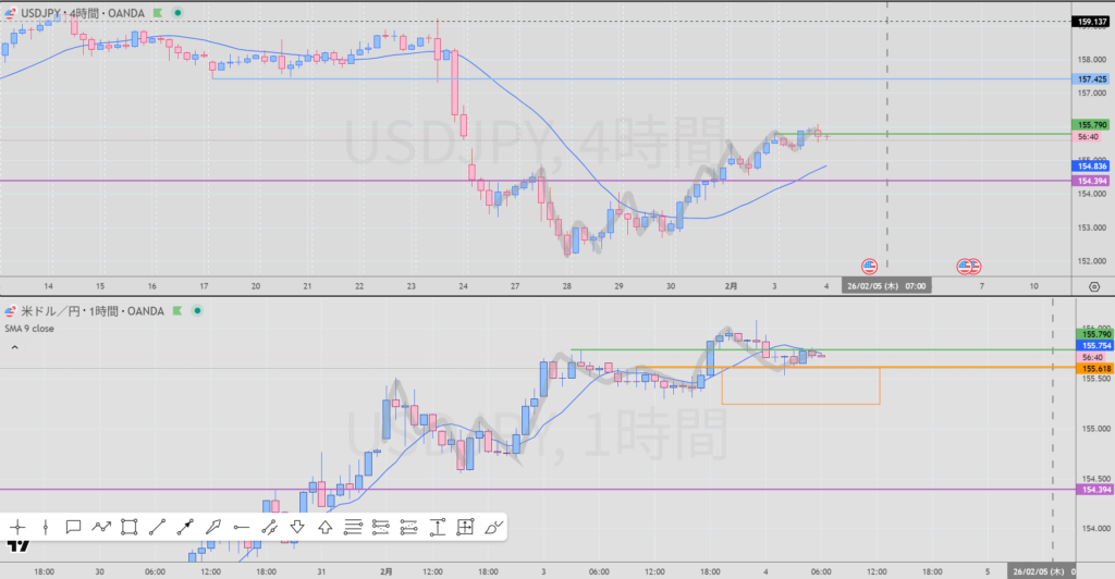 4H戻り売りがセオリーだが、自分には分かりずらい波。分かるまで静観。