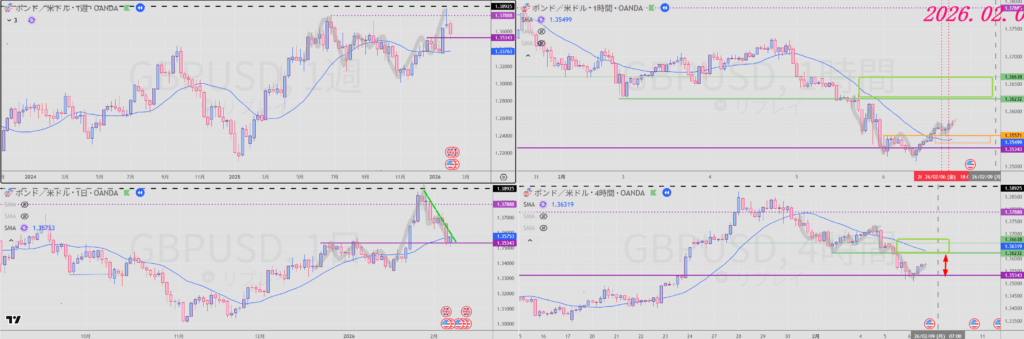 振り返り:日足のレジスタンスと 4H買い支えの間でもみ合い状態