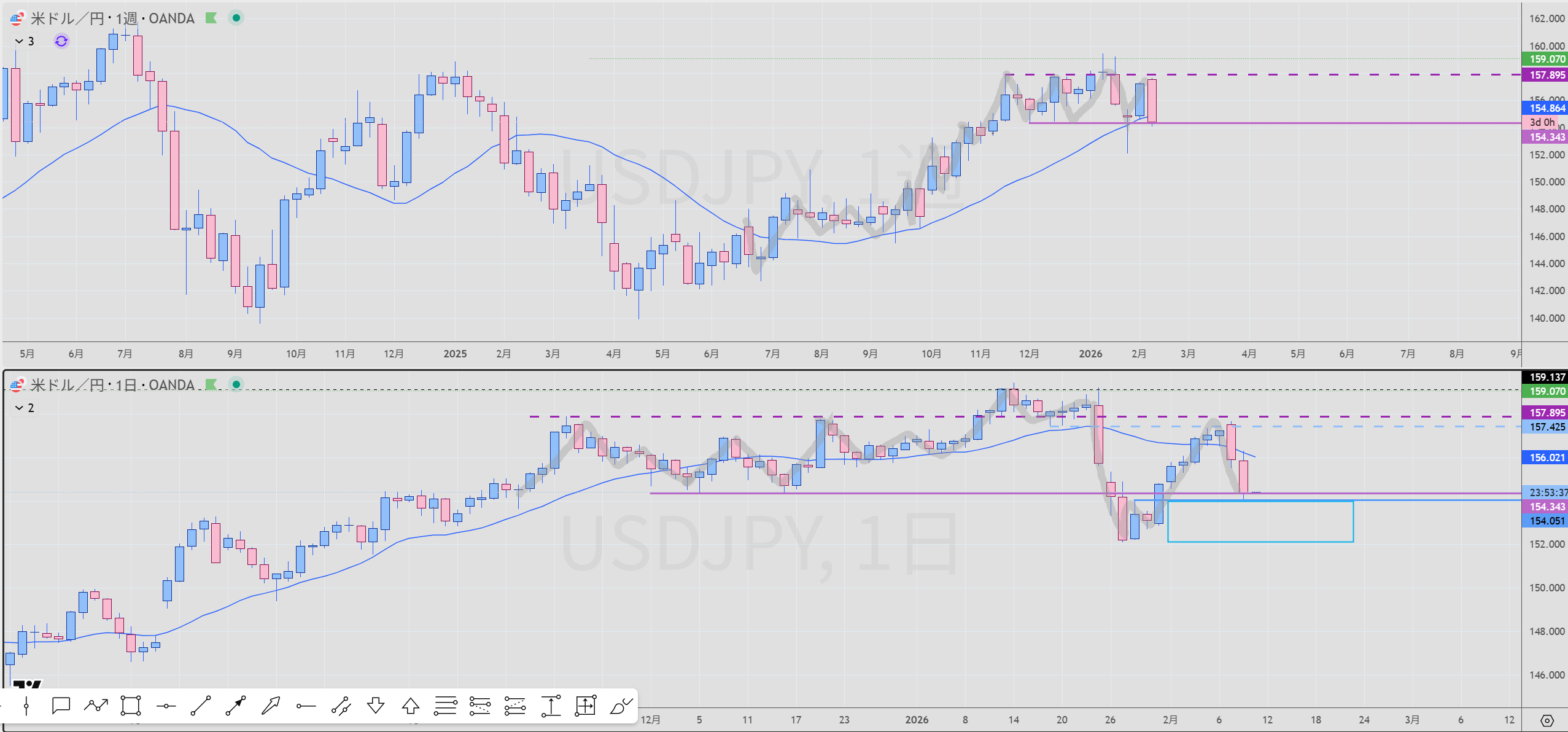 戻し売りできた場合ターゲットは日足のサポートまで。