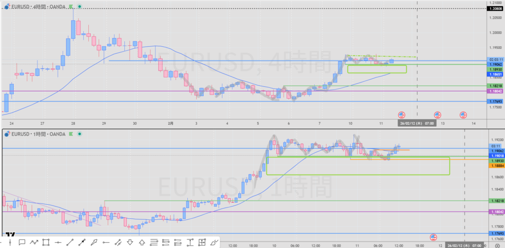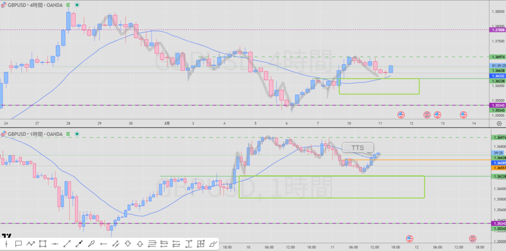 シナリオ:4H押目買い。押しの波が来るのか!!観察