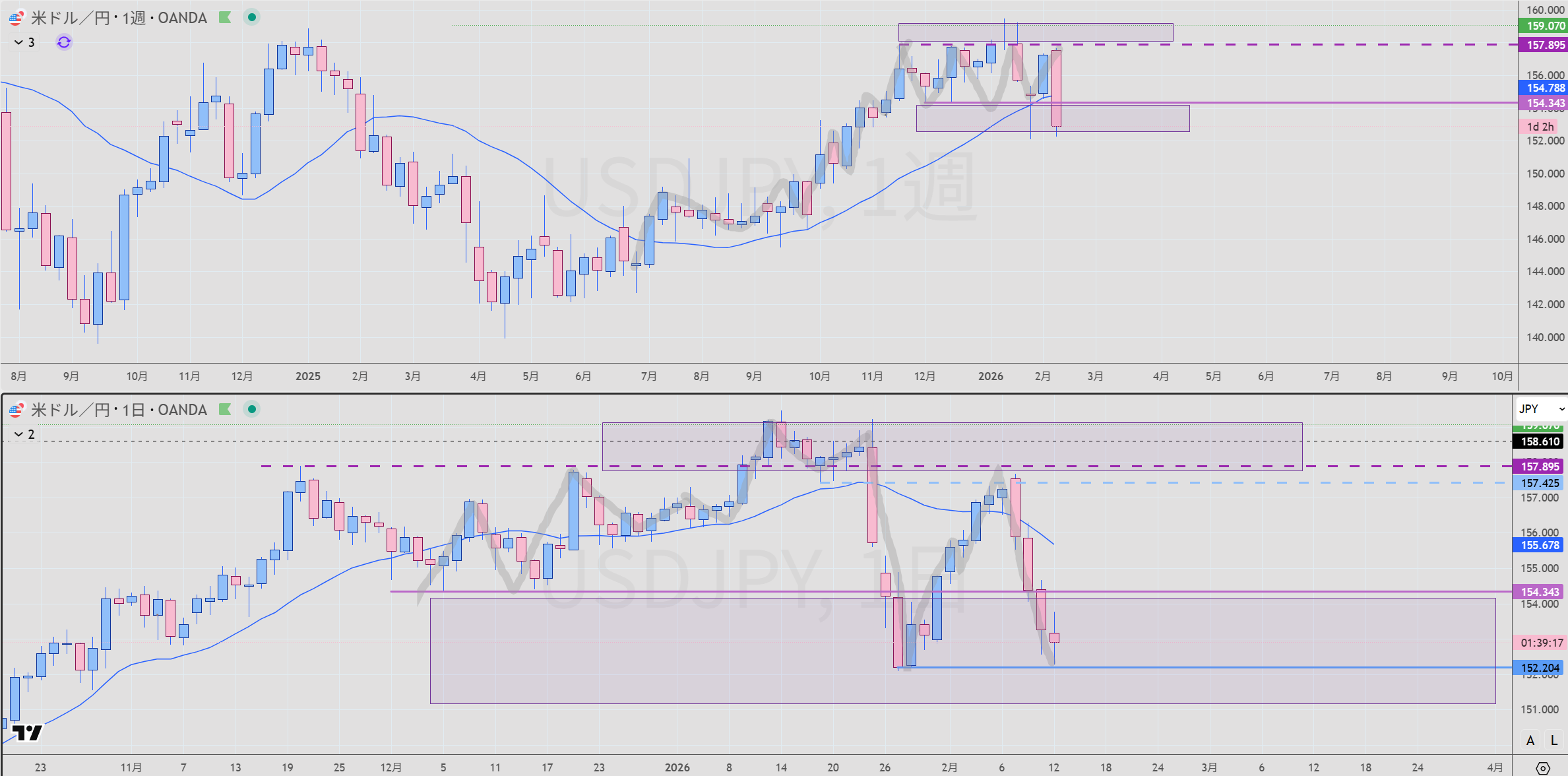 ローソク足MAを下に抜ける。(週中なので確定ではない)今は下落の勢いが優勢か!?