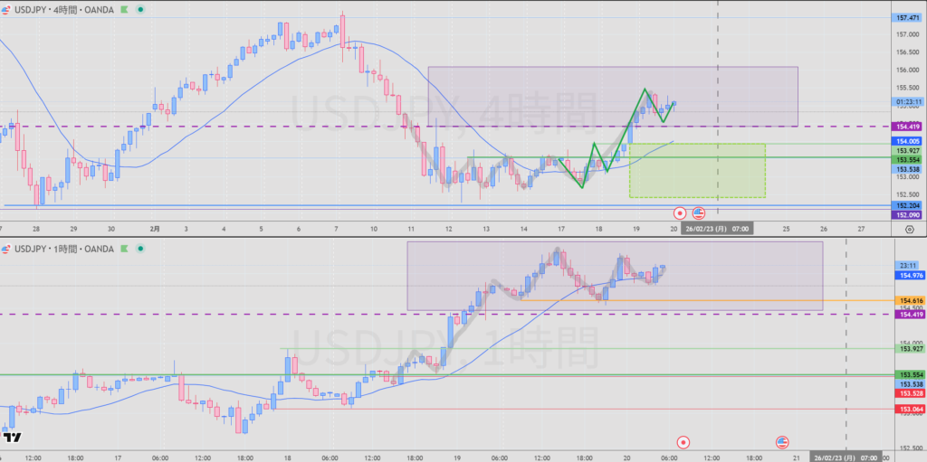 4H 上か下かどちらか抜けてから再考察。