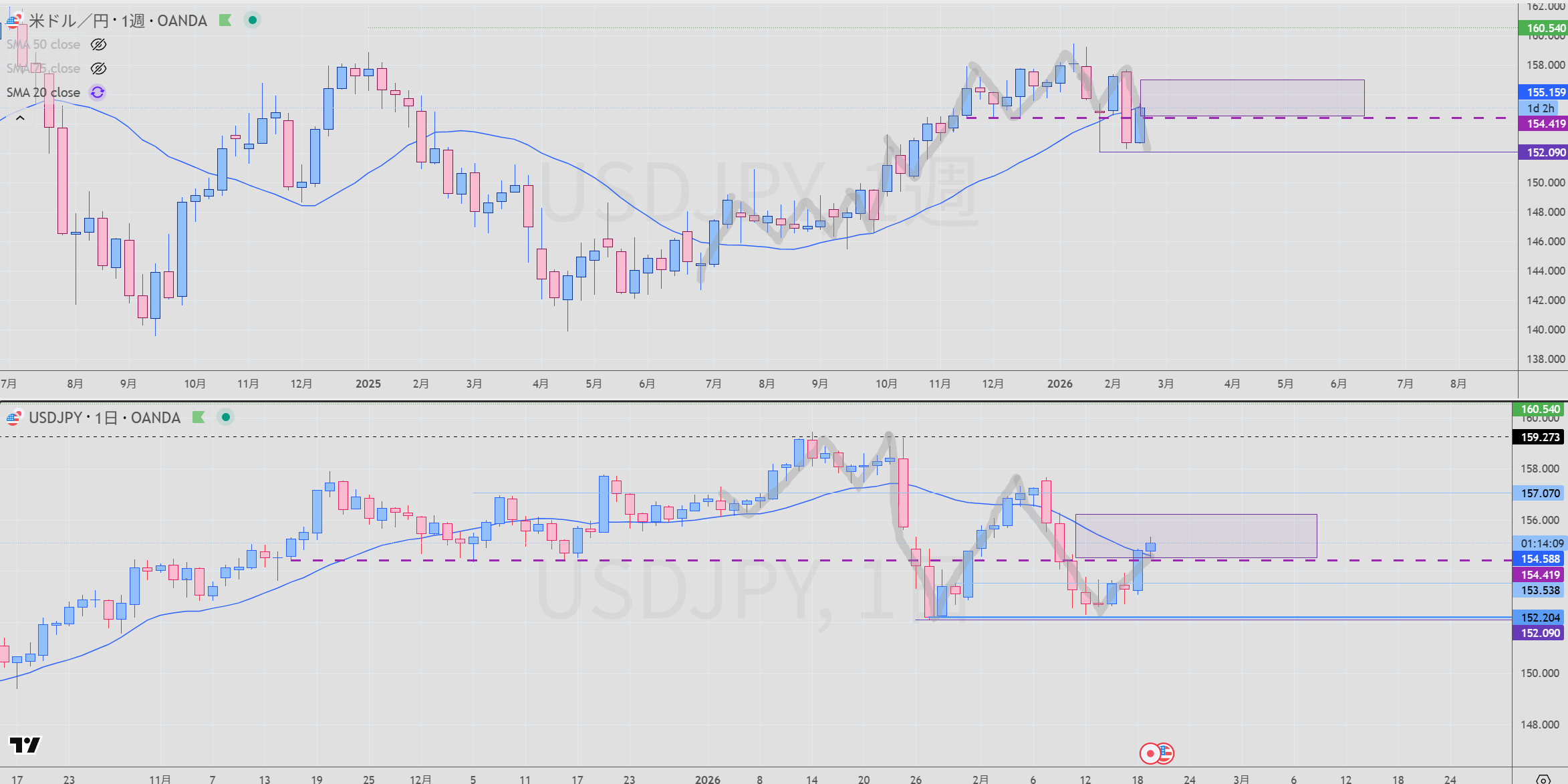 - 週足 紫 買いサポート 実線