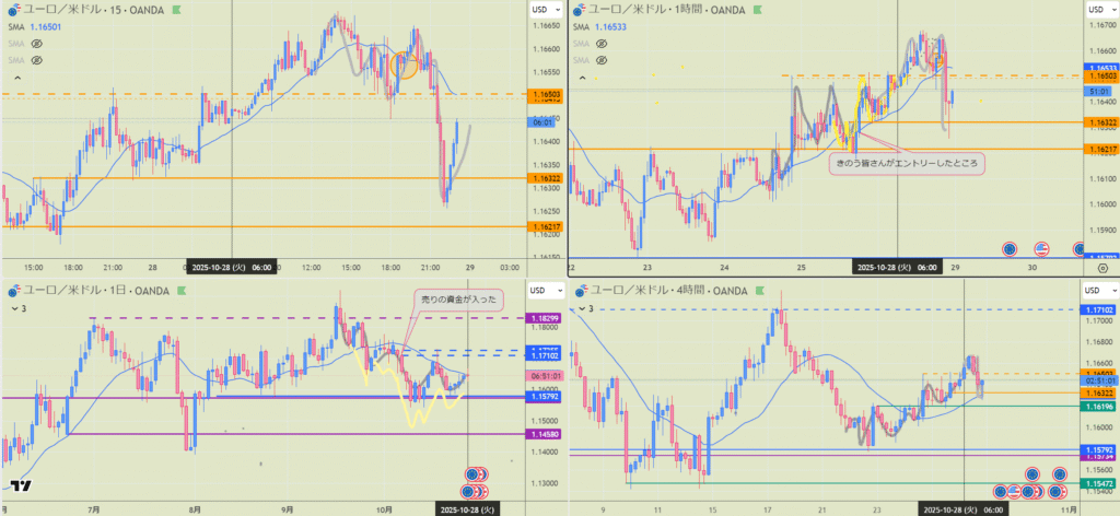 ユロドルが止められたのは日足のMAと売り抑え勢力が要因か?!