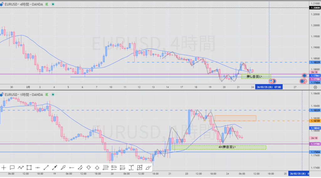 1H押し目買い15MでEP朝からきているが