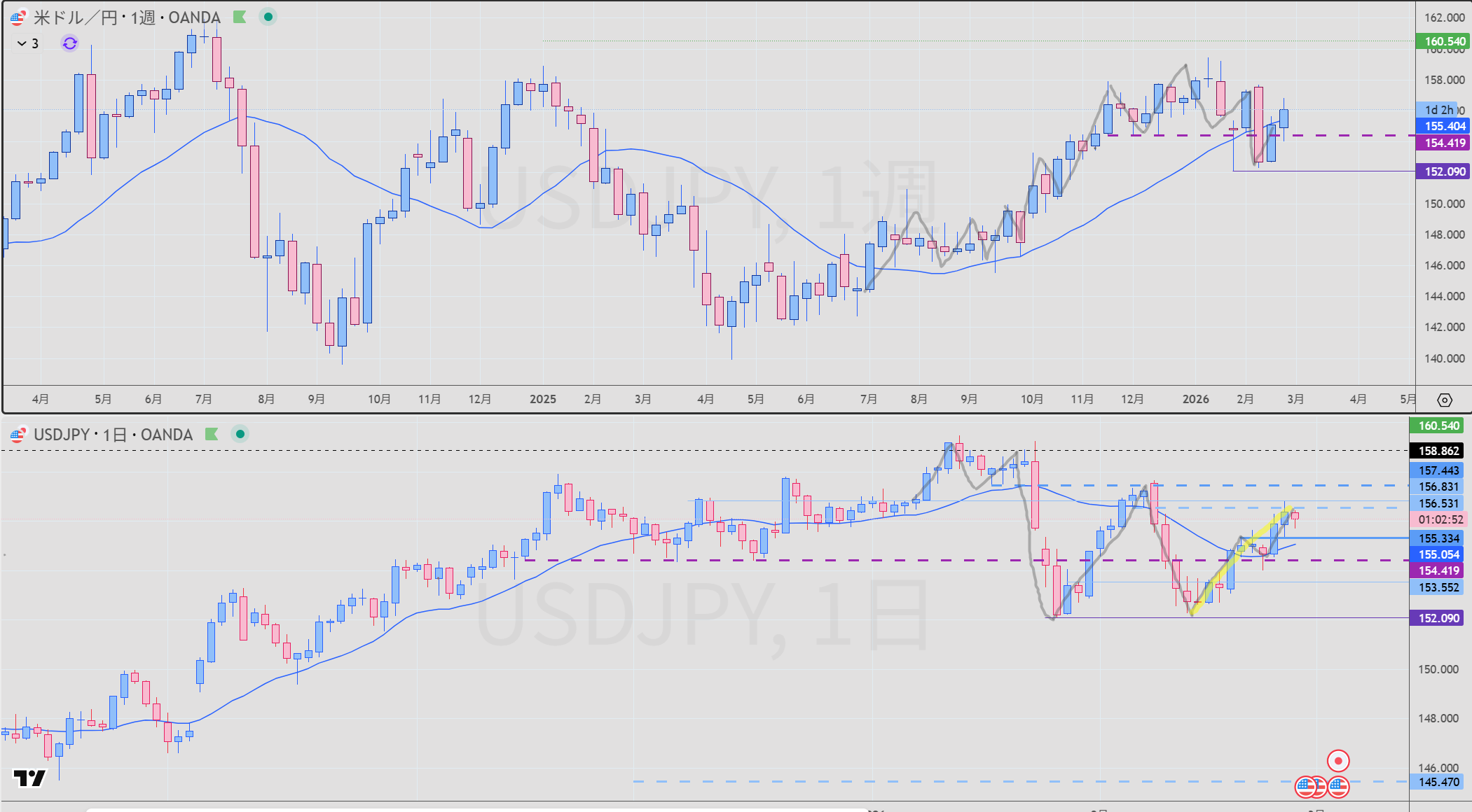 が、上に超えてきた(未確定)週末リスクでMAでレジストになるかどうか?
