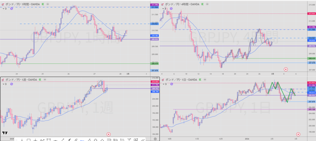 ポン円はここから落ちてもいい感じの波になる(カウントの取り方にもよるけどね。)