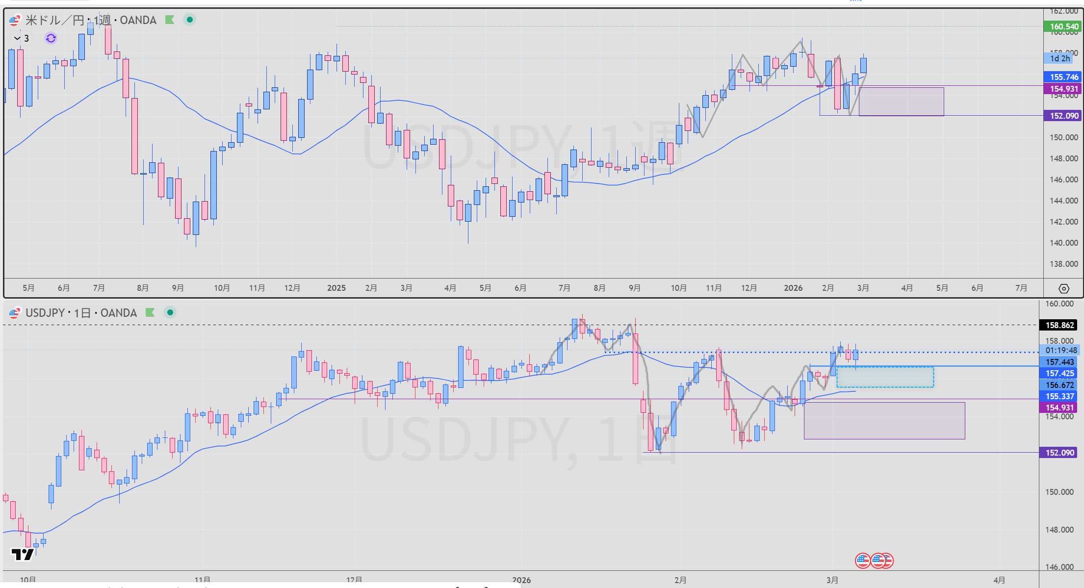 - 週足 紫 買いサポート 実線