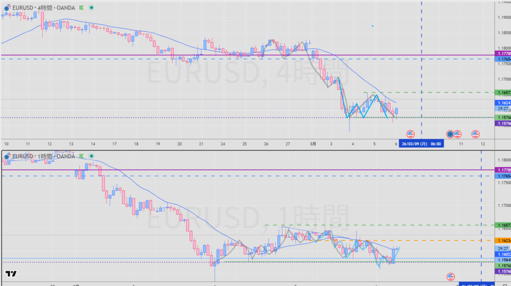 セオリー 4H全戻しからの下げを考えるが時間経過が必要。早くて欧州以降~