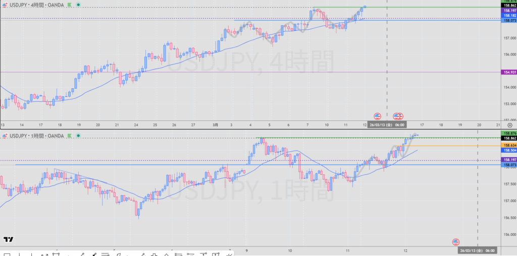 4H MA下に抜けたら売り検討で観ていく(日足の戻り売り想定)
