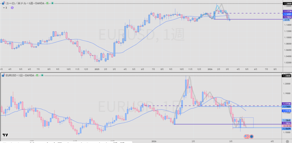 - 週足 紫 買いサポート 実線