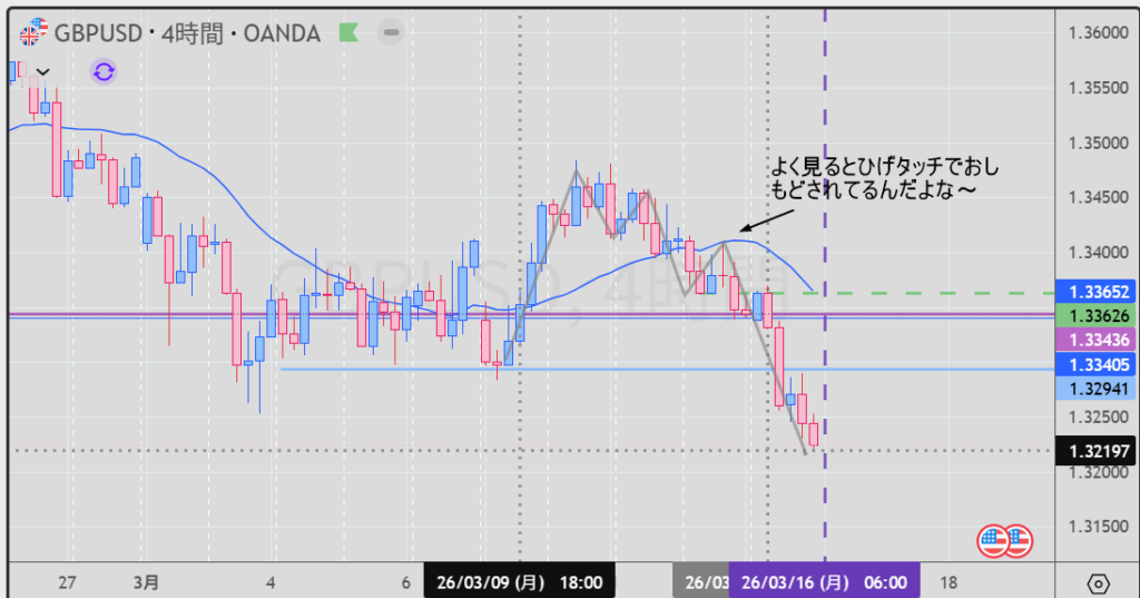 4時間の下落を1時間の戻り売りかな~