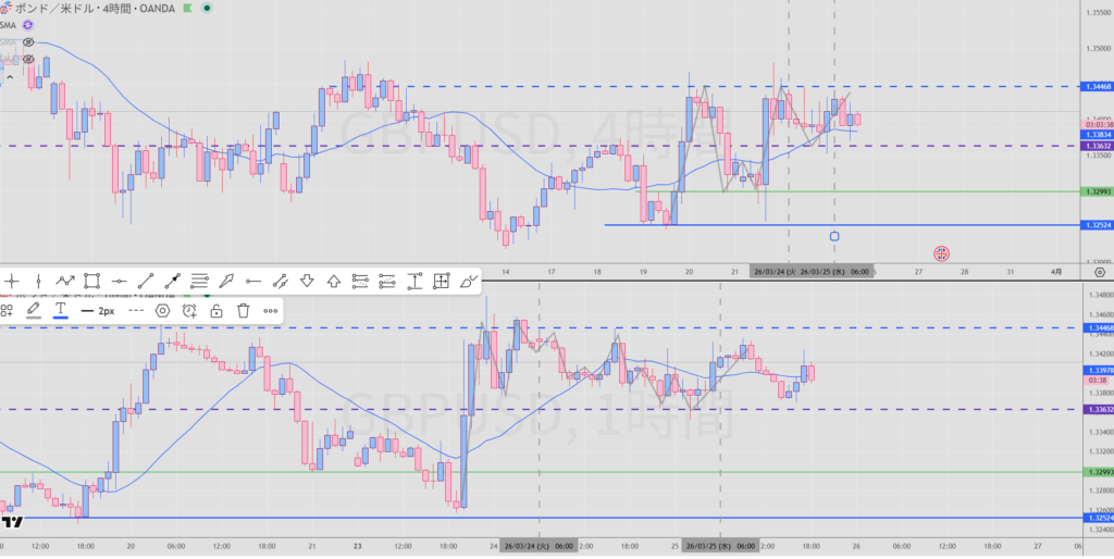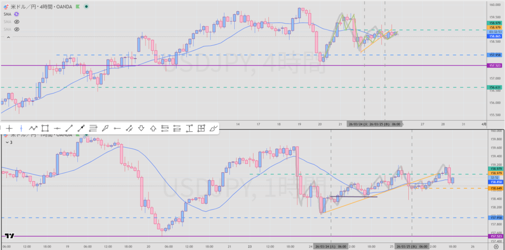 日足VS4Hもみ合いやすい