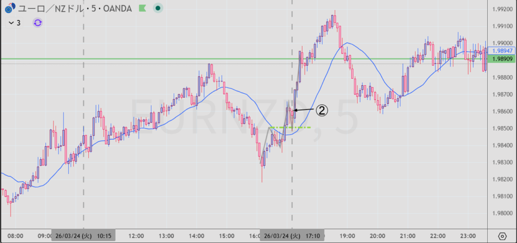 ②5分足でエントリ 17:09 1.98617