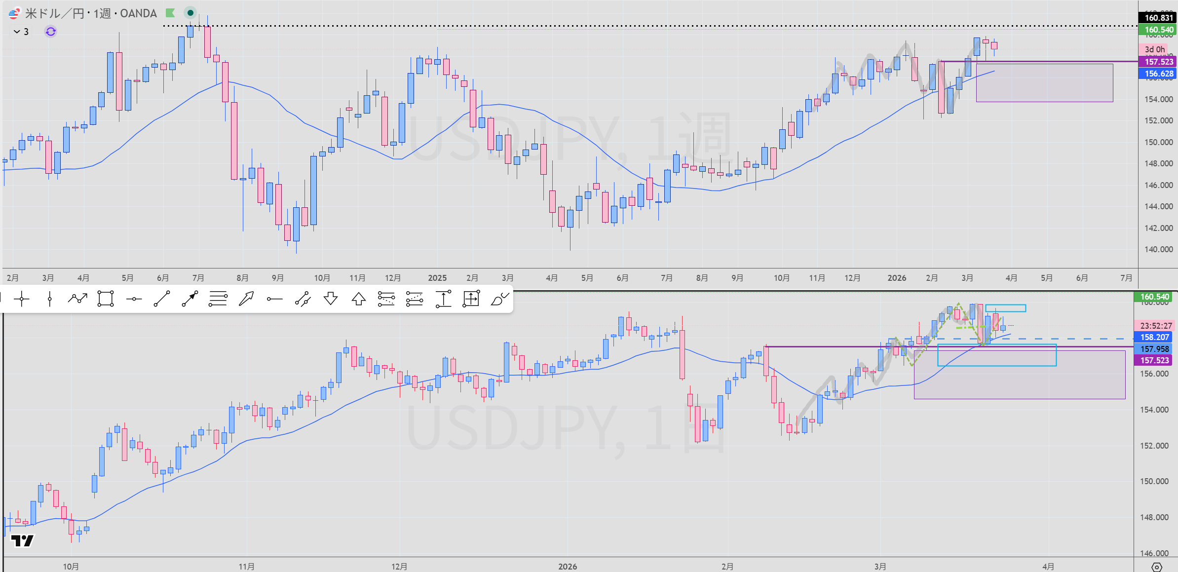- 週足 紫 買いサポート 実線