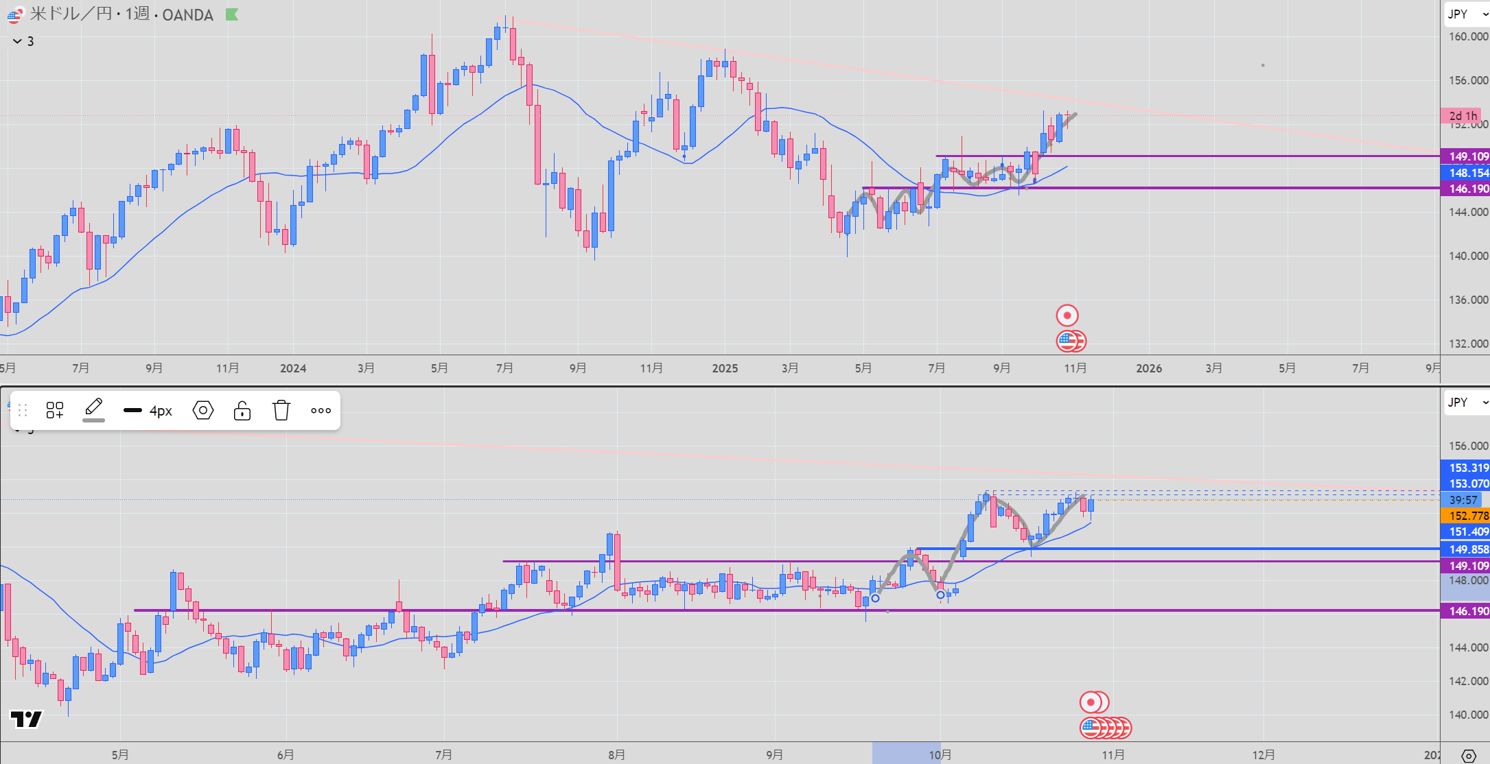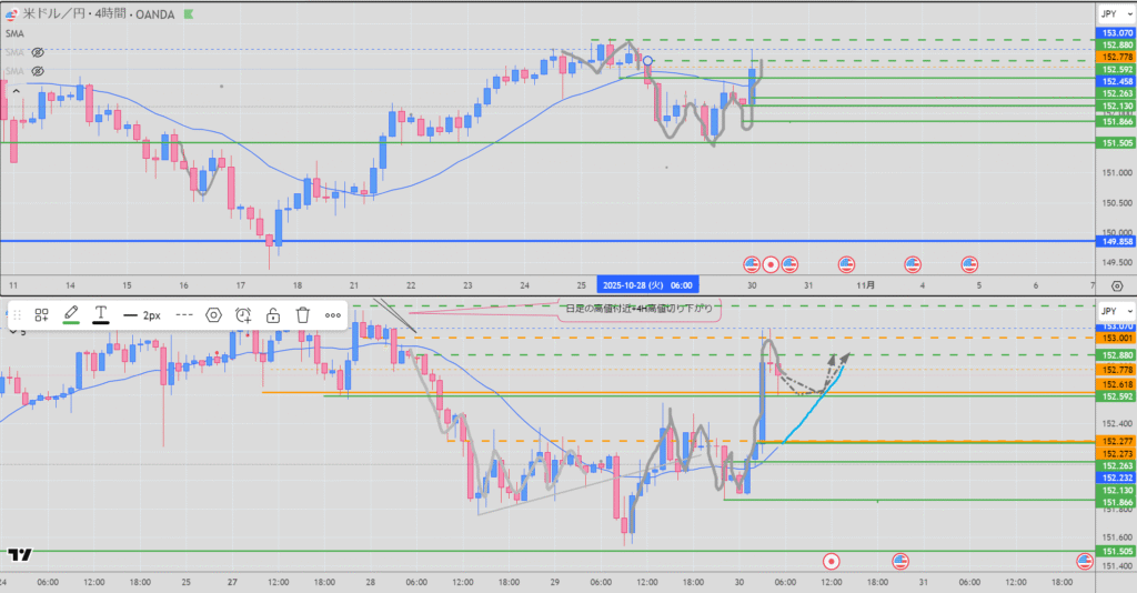 塾長動画で答え判明 4時間の戻り売りラインをみてたので無しです。(上位足の戻り売りが下位足のより先に居たらそっちで考えてよいと思っていた。)