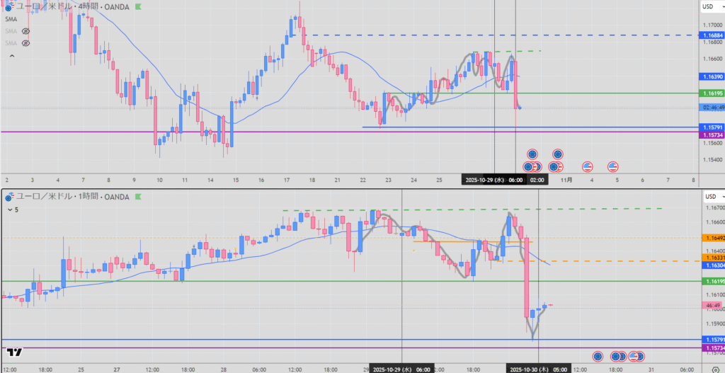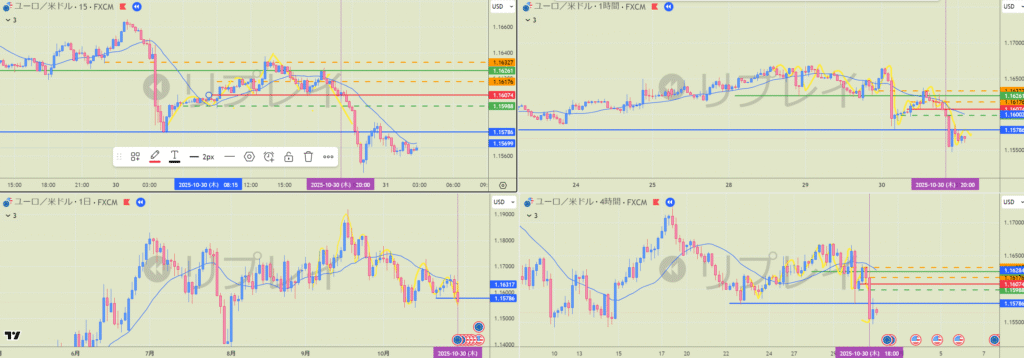 1時間足 20時ごろ買い支えを下に割りサポレジえb