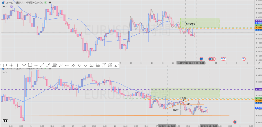 振り返り:4H戻り売り 振り返れば15時過ぎに入れたのかも・・。