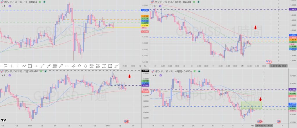 4Hでトレンドが下向きになってきたが、まだまだPOの上位足がついてくるのかどうか???