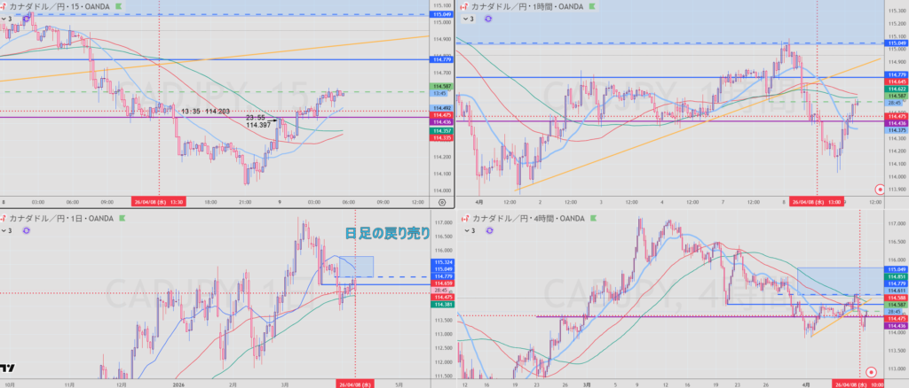 シナリオ:定点観測 押しをつけたなら、4H押し目買い(セオリー)NYかな?~上に週戻り売り、日足の高値帯あり。