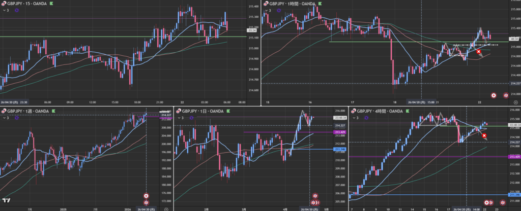 GBPJPY 4H戻り売りで止まって反転するのかどうか観察。NY?