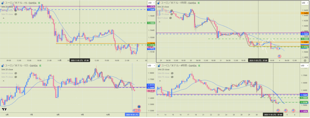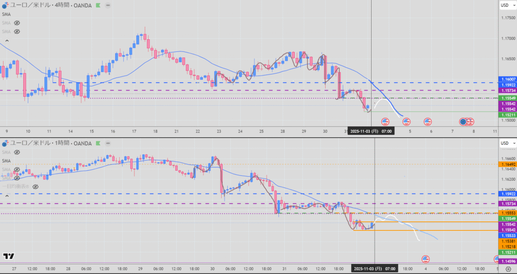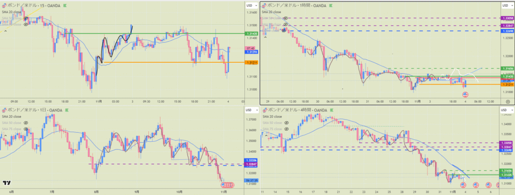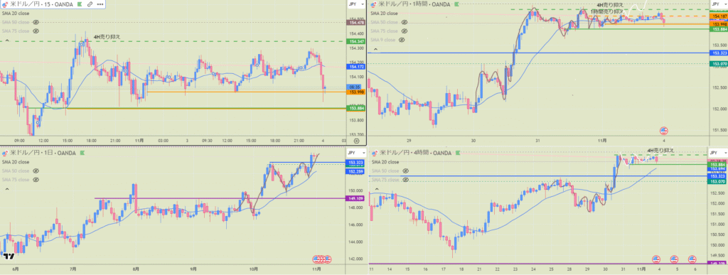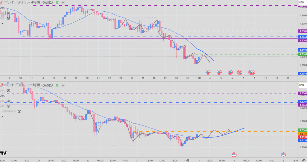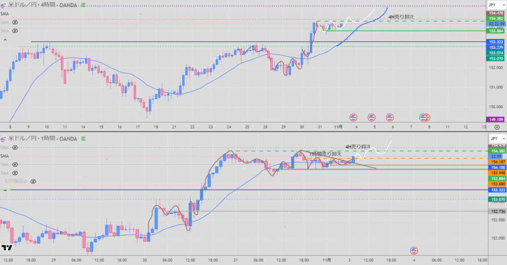 4時間軸でシナリオを立てたので、1時間軸でのトレードは考えなかった。