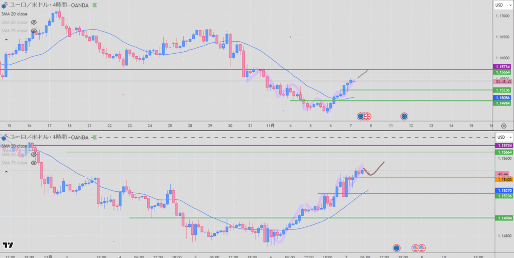 ユーロドル 7時頃判断